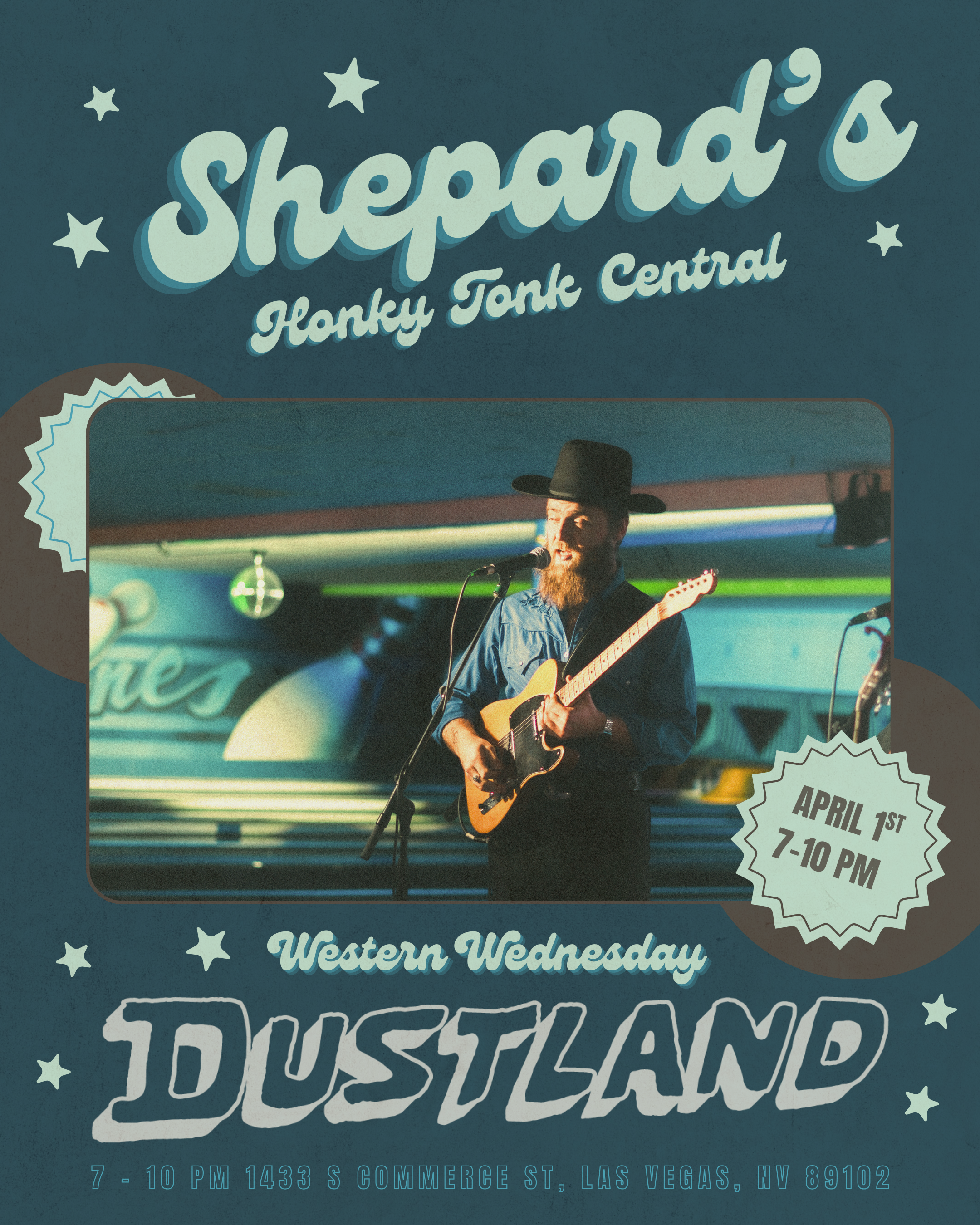 hepard brings Honky Tonk Central to the Dustland stage for a midweek dive into classic country energy. Expect boot-stomping rhythms, twangy guitars, and a night built for two-stepping, sing-alongs, and cold drinks. Inspired by the spirit of old-school honky tonks, the band delivers a mix of classic and modern country that turns any room into a dance floor.