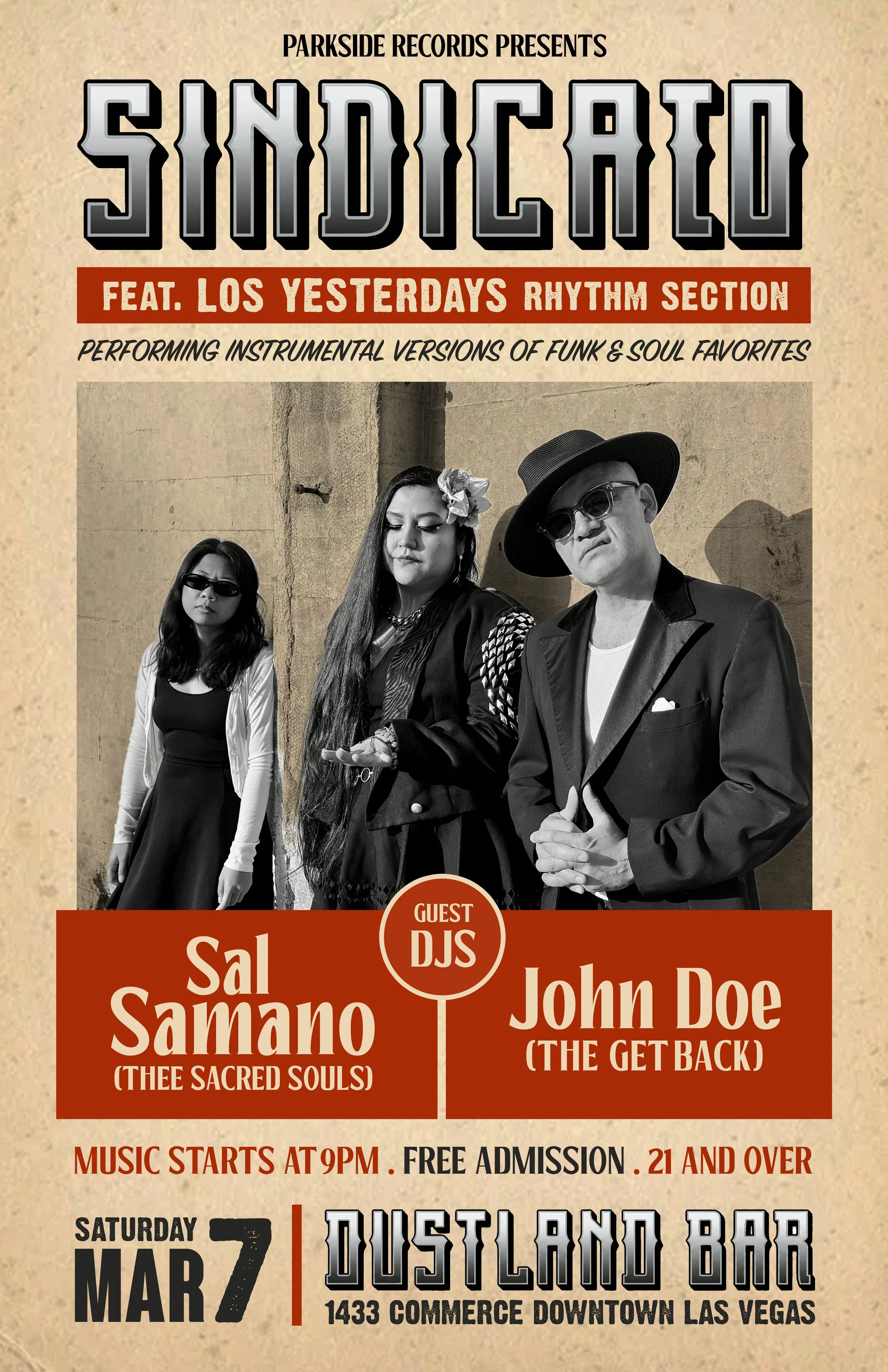 Joining them on the turntables will be special guest DJs Sal Samano from the Sacred Souls and Vegas legend DJ John Doe (The Get Back).